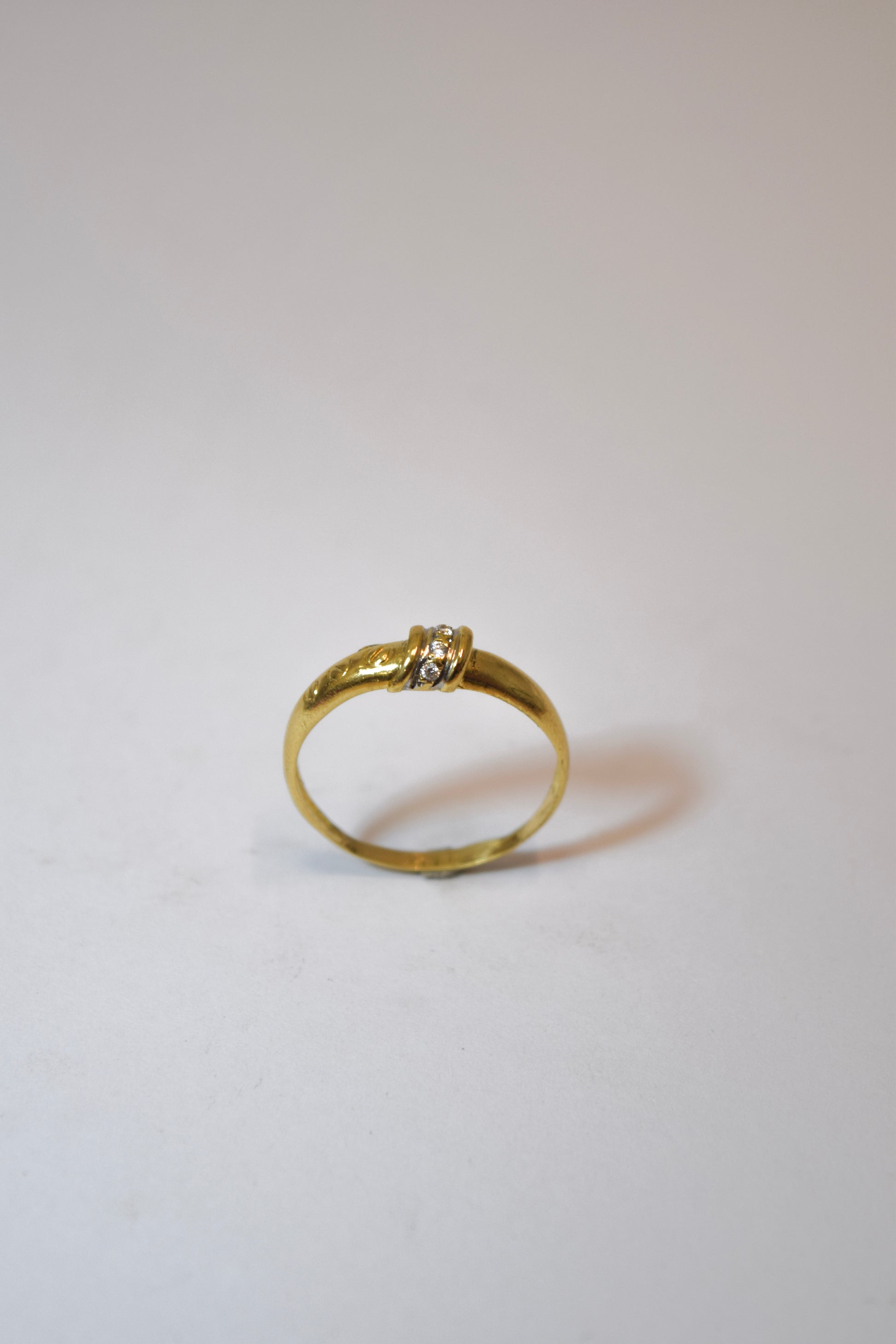 Este anillo de oro amarillo de 18 quilates presenta una distintiva cubierta central que envuelve la banda con elegancia. Adornado con piedras blancas meticulosamente engastadas, el diseño combina la artesanía clásica con detalles refinados, convirtiéndolo en una pieza excepcional para quienes aprecian la joyería sofisticada con un toque único.